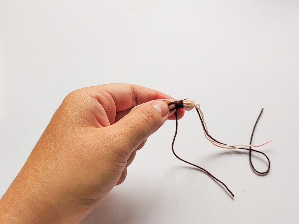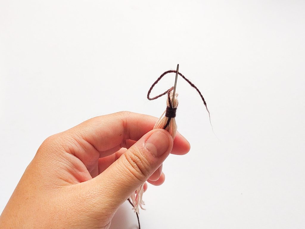 上面剩餘的線材,我們可以用毛線針將它藏進去流蘇裡。