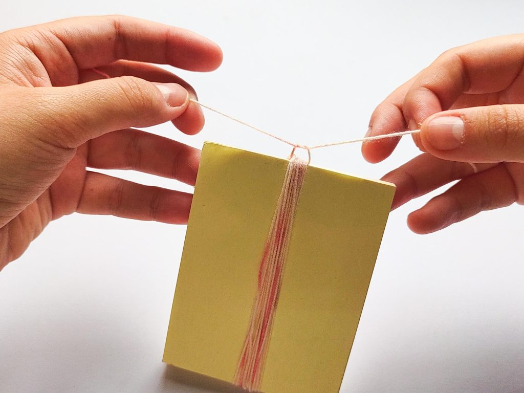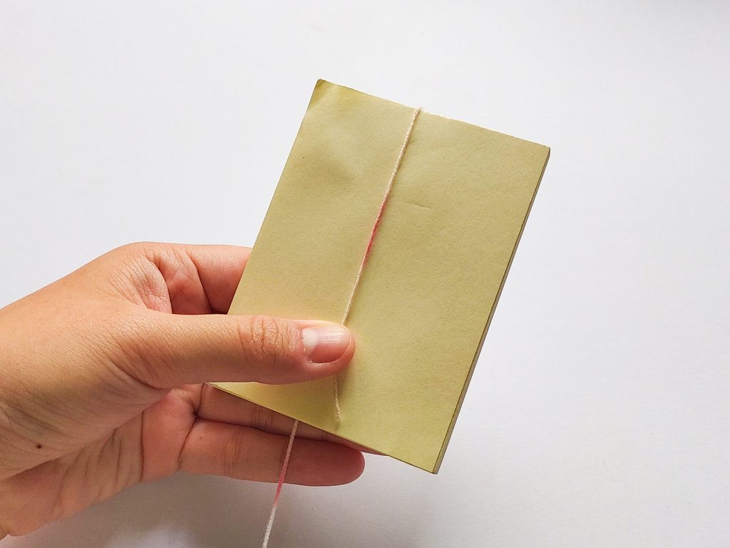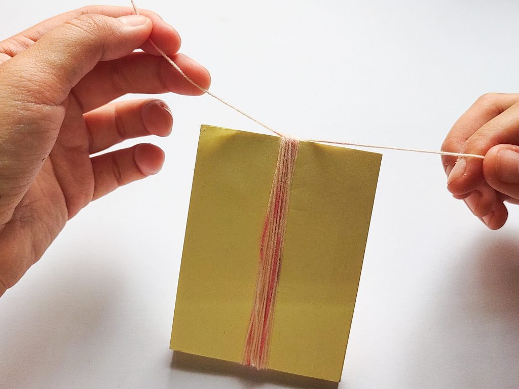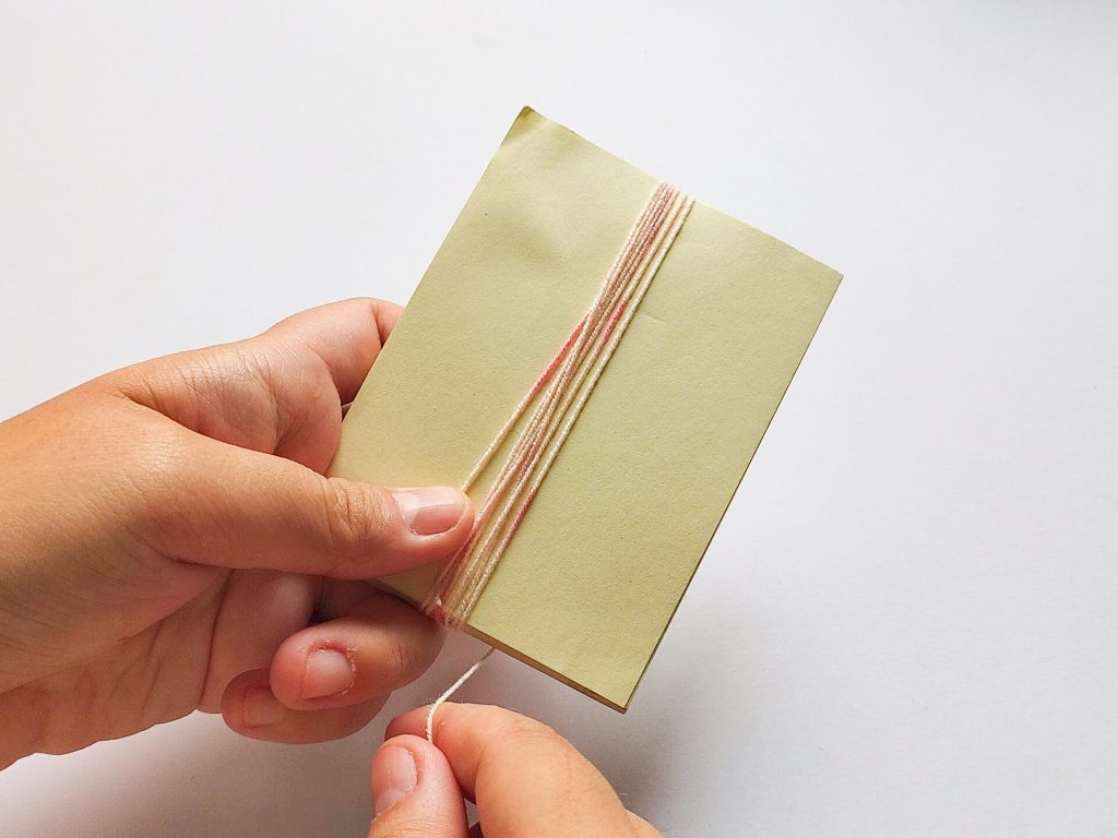 先拿一塊約10公分高的紙板,用蕾絲線在上面纏繞約15-20圈。